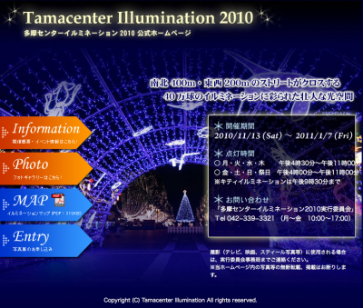 また、この時期は多摩センター駅前のパルテノン大通りなどで「多摩センターイルミネーション2010」も開催中です。